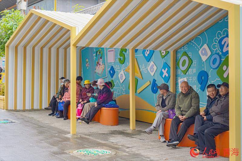 老城慢生活,街坊邻居在创意彩绘建筑下闲聊。 实习生 孟啟昇摄